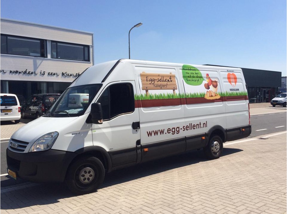 Ondanks al die groei vonden we het belangrijk om ook iets terug te doen. Elke week brachten we alle overgebleven eieren naar de Voedselbank, zodat ze terechtkwamen bij mensen die het hard nodig hadden. En naast deze donaties sponsorden we de Voedselbank ook op een andere manier: door hun bus te voorzien van ons logo. Inmiddels verkochten we rond die tijd zo’n 100.000 eieren per week en liepen er ongeveer 200 jongeren mee.